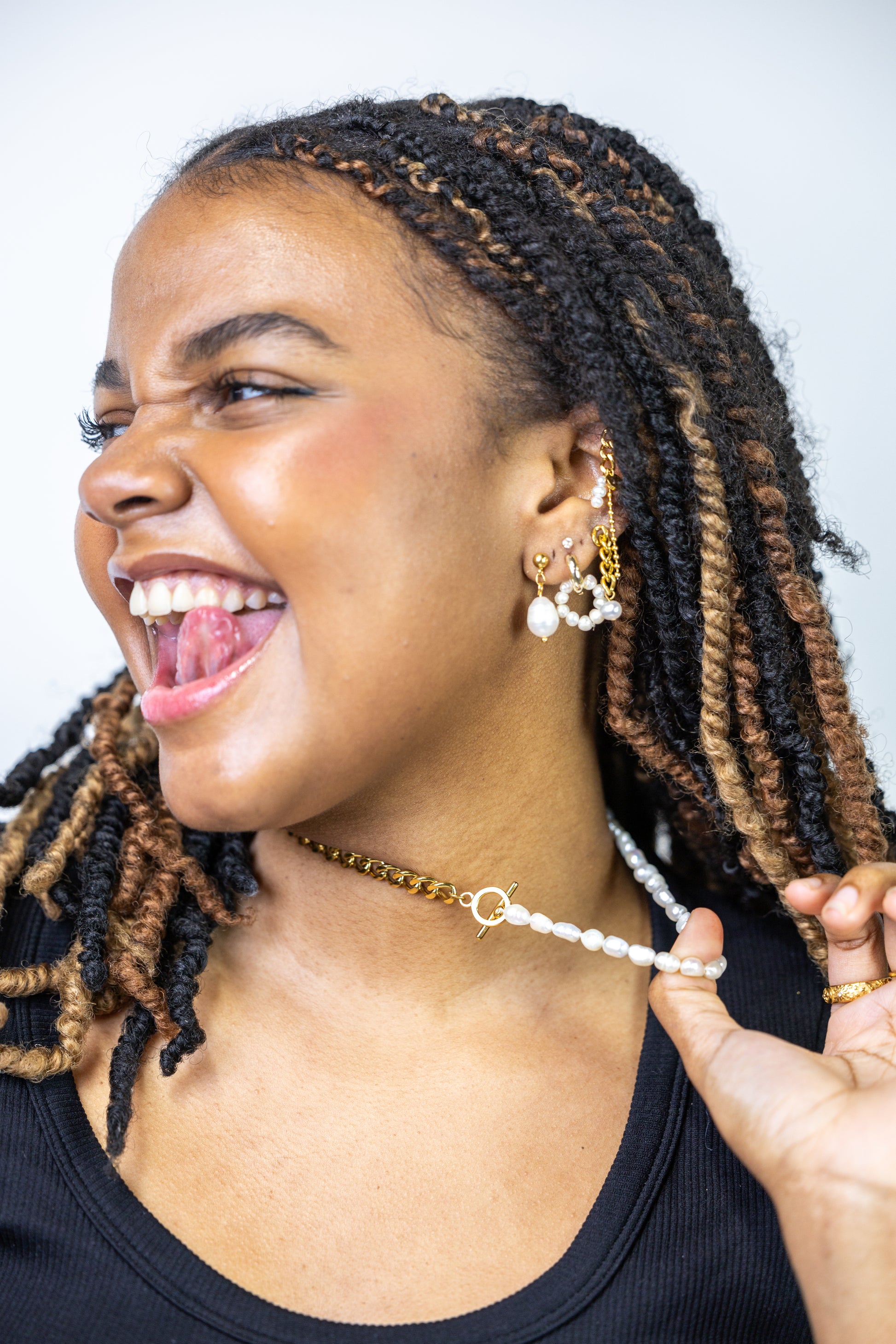 18k Gold plated stainless steel chain with freshwater baroque pearls.